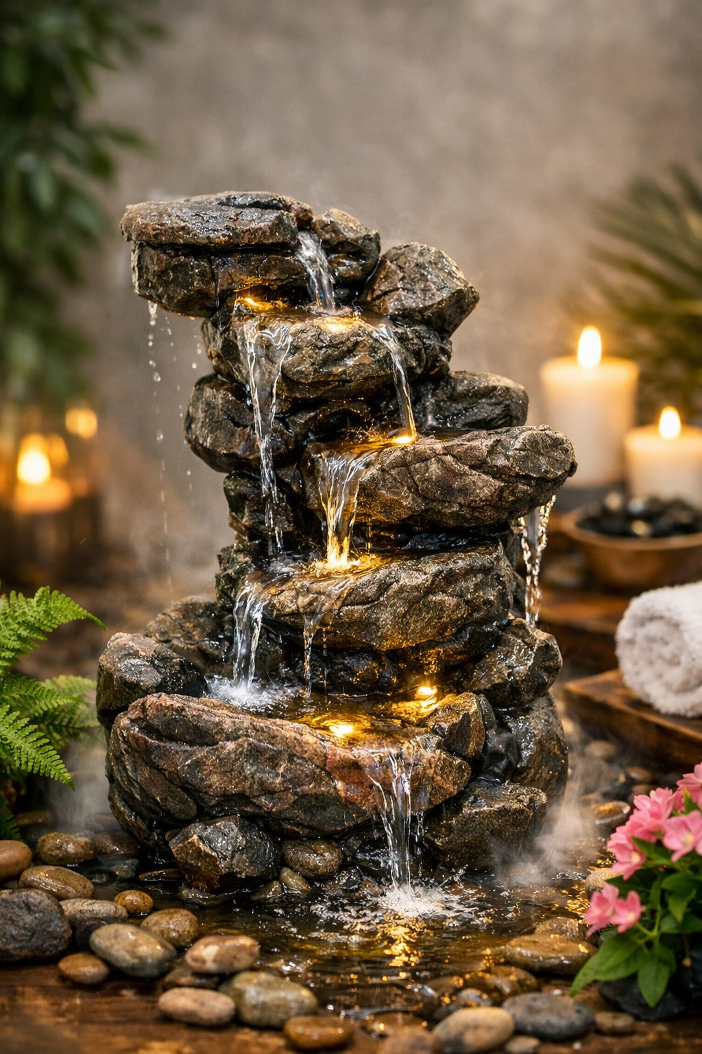 Ta in Feng-Shui i ditt hem, kan vara livsförändrande. Feng-Shui handlar om att skapa balans, harmoni, naturligt flöde och energi för att förbättra ditt humör, ditt välbefinnande och din inre styrka. Ett av de bästa sätten att göra detta är med denna avkopplande fontän för inomhusbruk.
